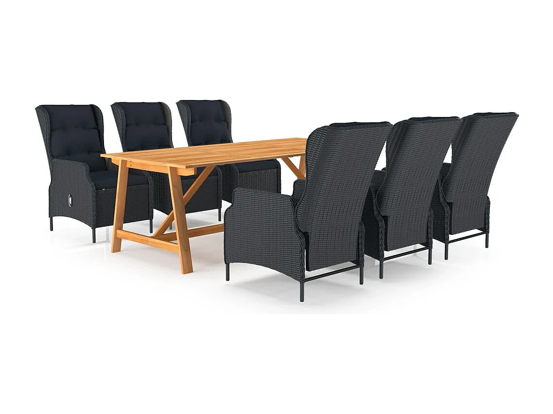 7 pcs conjunto de jantar para jardim cinzento-escuro