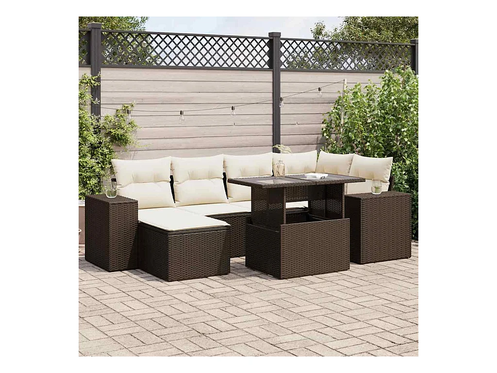 6 pcs conjunto de sofás jardim c/ almofadões vime PE castanho