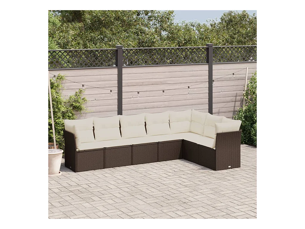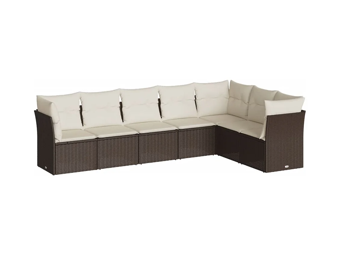 7 pcs conjunto de sofás jardim c/ almofadões vime PE castanho