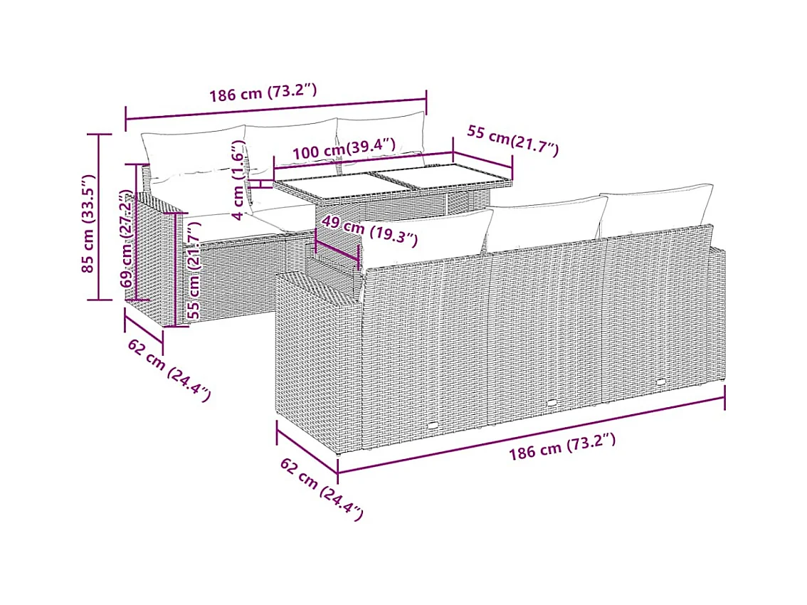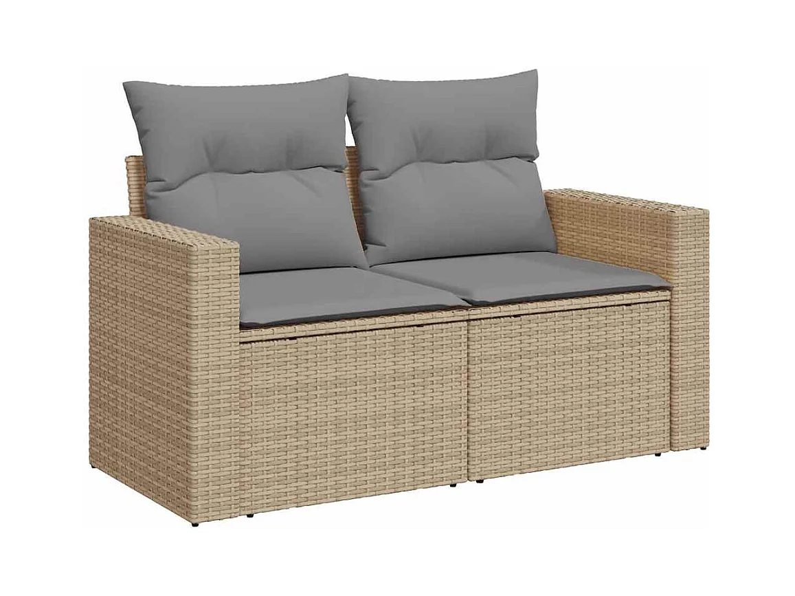 7 pcs conjunto de sofás p/ jardim com almofadões vime PE bege