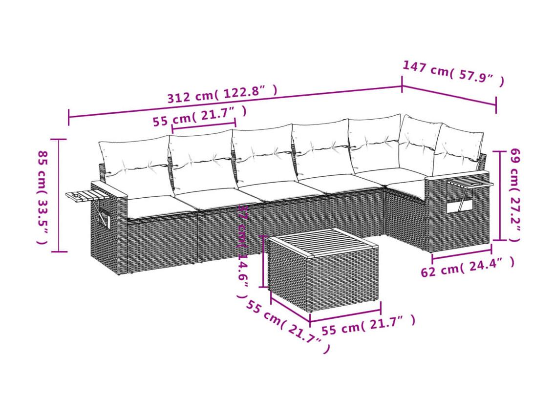 7 pcs conjunto de sofás p/ jardim com almofadões vime PE bege