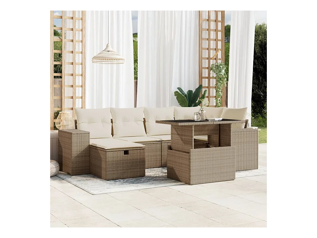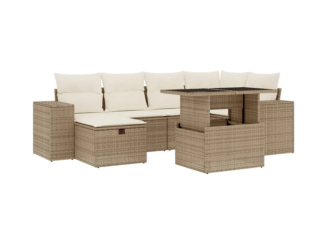 7 pcs conjunto de sofás p/ jardim com almofadões vime PE bege