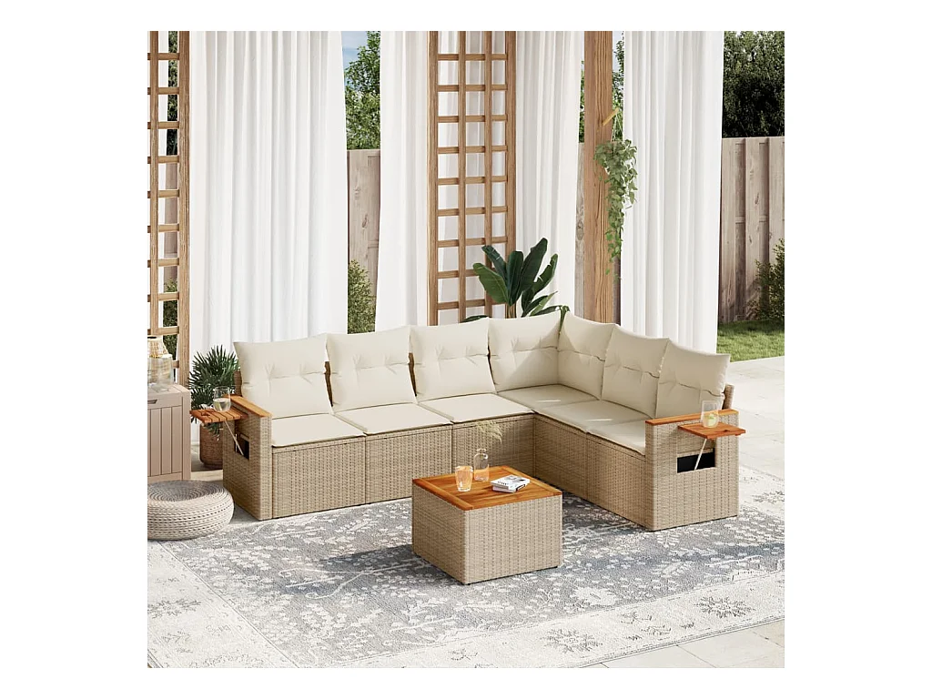 7 pcs conjunto de sofás p/ jardim com almofadões vime PE bege