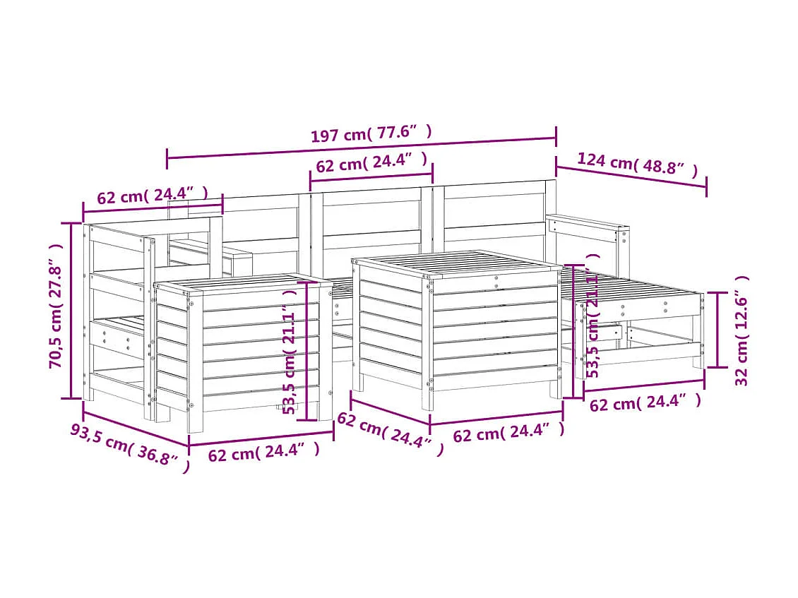 7 pcs conjunto de sofás para jardim madeira de pinho maciça