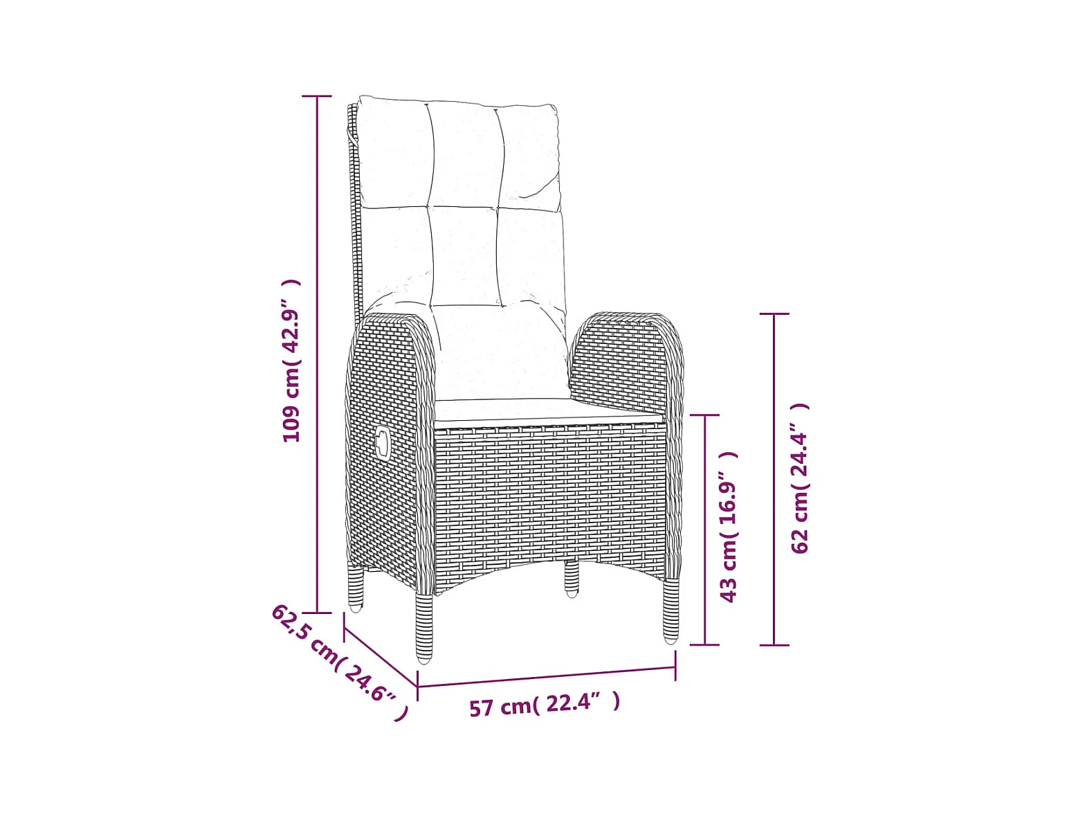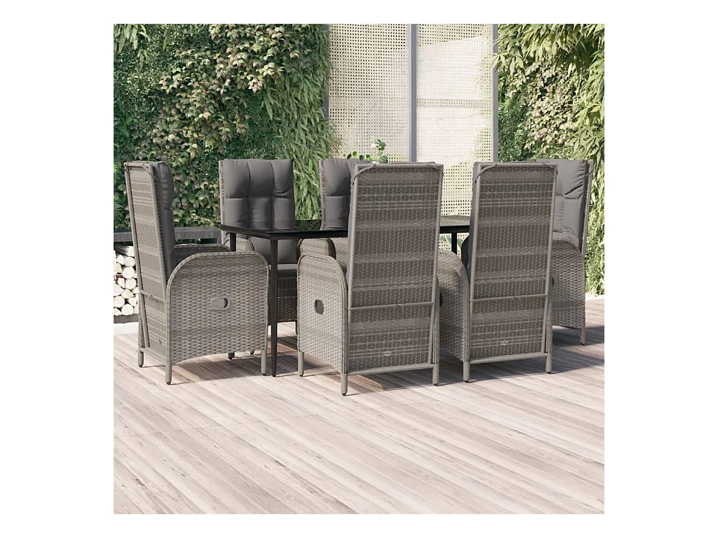 7 pcs conjunto jantar jardim c/ almofadões vime PE preto/cinza
