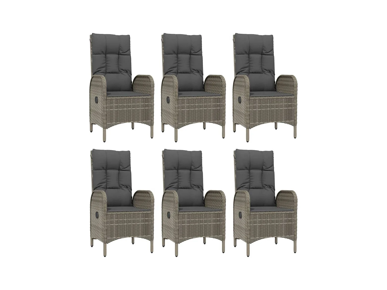 6 pcs conjunto lounge de jardim c/ almofadões vime PE cinzento