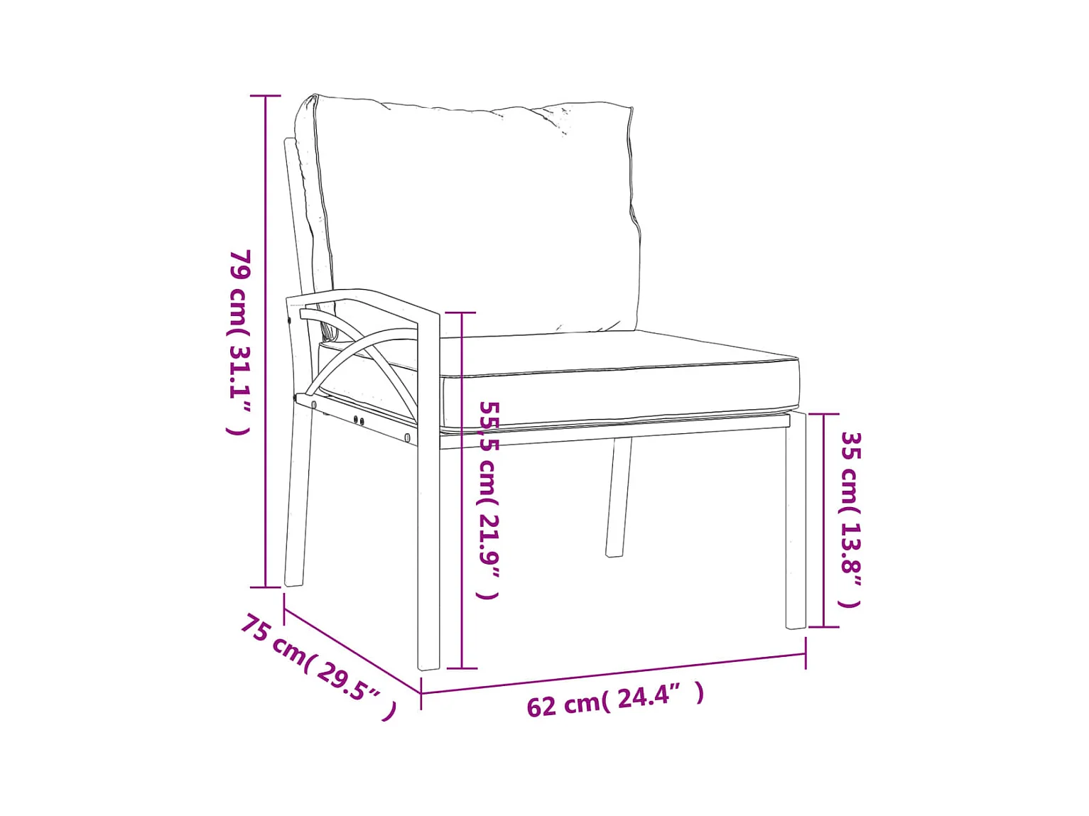 7 pcs conjunto lounge de jardim aço c/ almofadões cinzentos