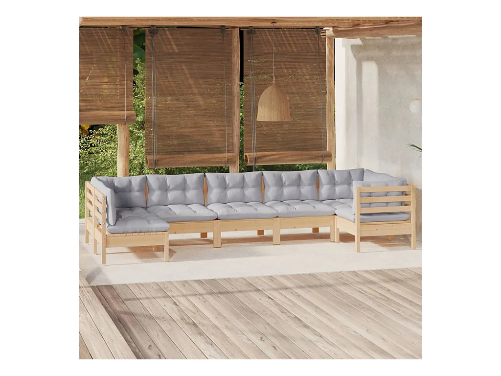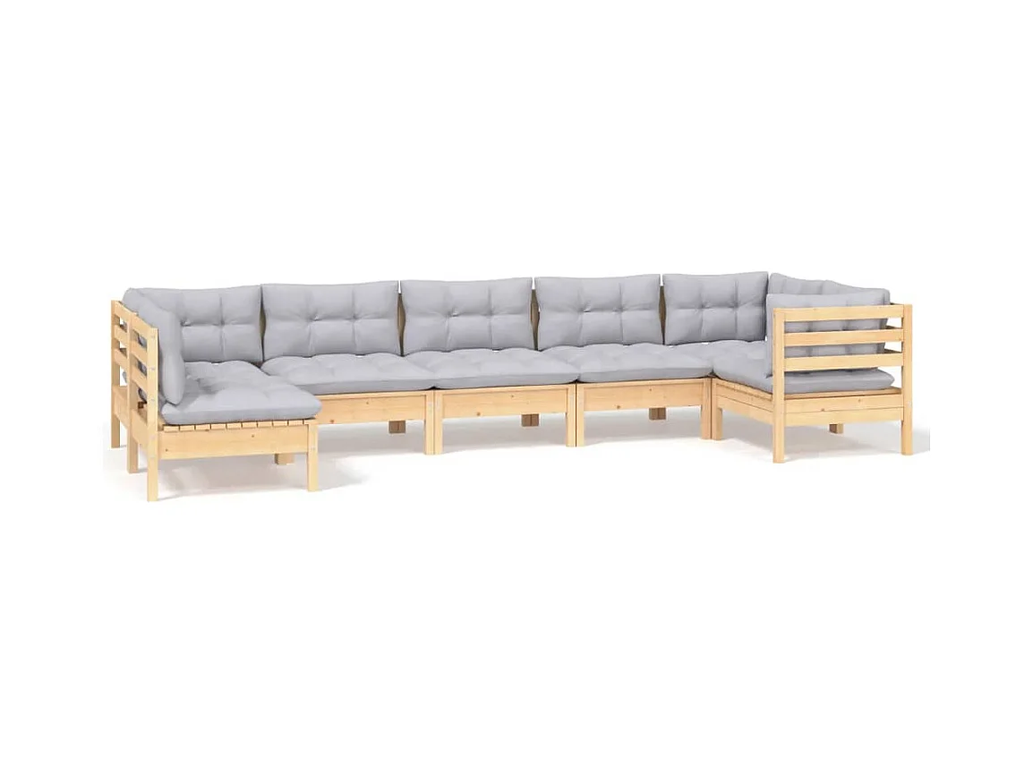 7 pcs conjunto lounge de jardim c/ almofadões cinza pinho
