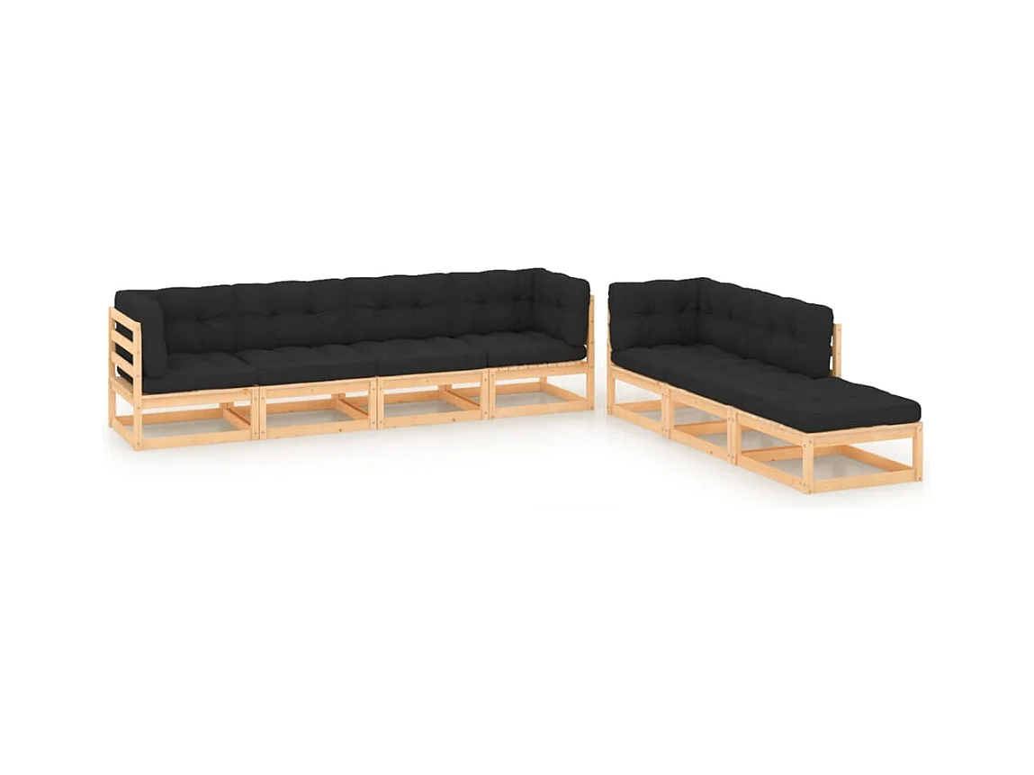 7 pcs conjunto lounge de jardim c/ almofadões pinho maciço