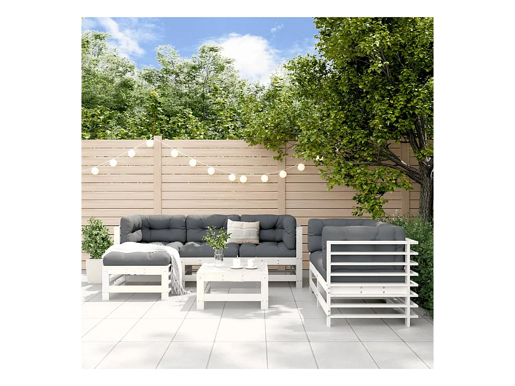 7 pcs conjunto lounge de jardim pinho maciço branco