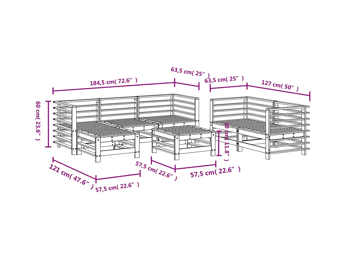 5 pcs conjunto lounge de jardim madeira de pinho maciça branco