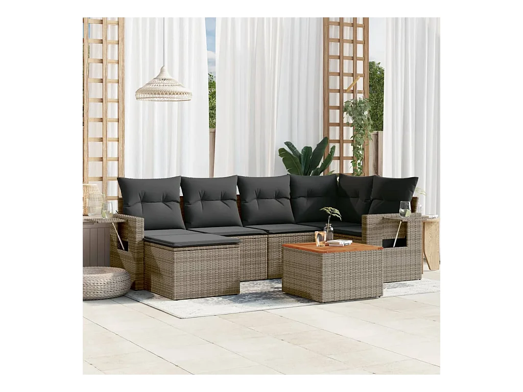 Móveis de jardim com almofadas 7 unidades de resina tecida cinza claro