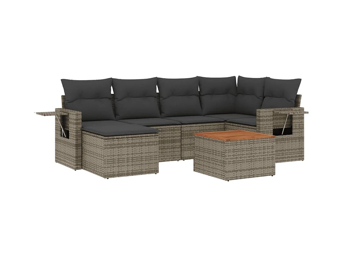 Móveis de jardim com almofadas 7 unidades de resina tecida cinza
