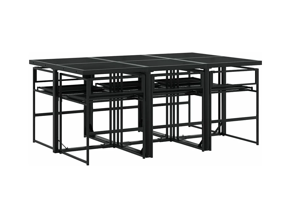 7 pcs conjunto de jantar para jardim aço e textilene preto