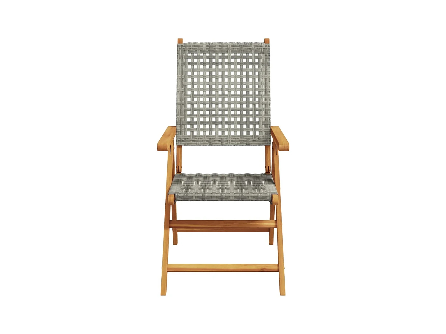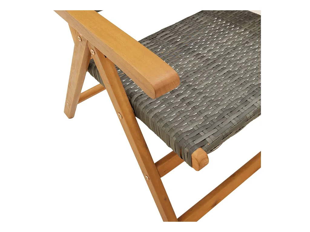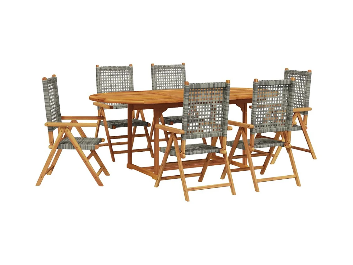 7 peças conjunto de jantar para jardim vime PE/ madeira maciça cinza