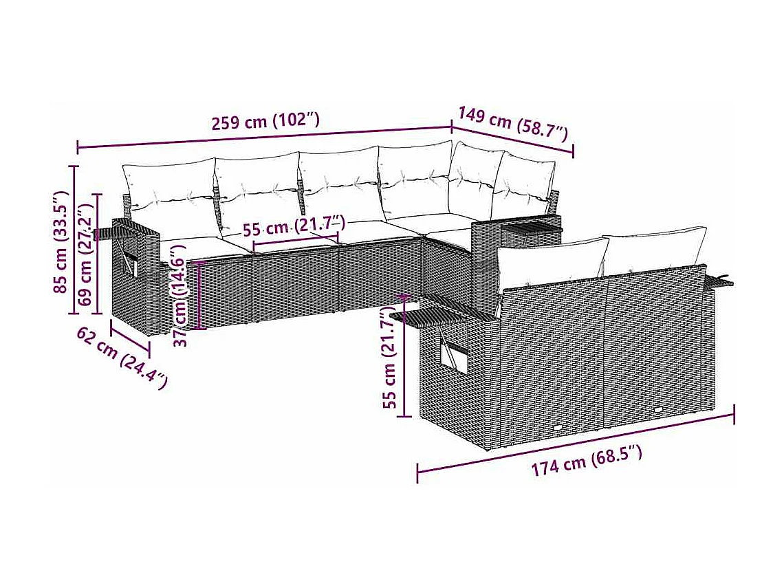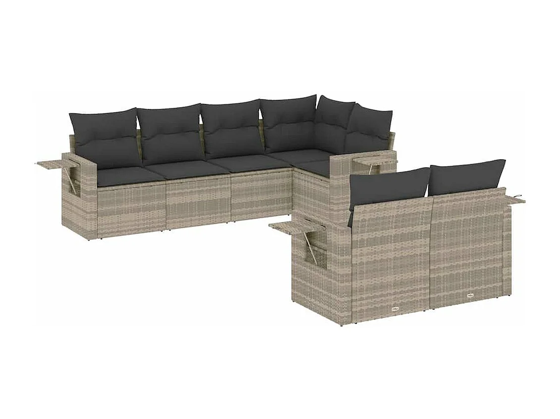 7 peças conjunto sofás jardim almofadões vime PE/acácia cinzento