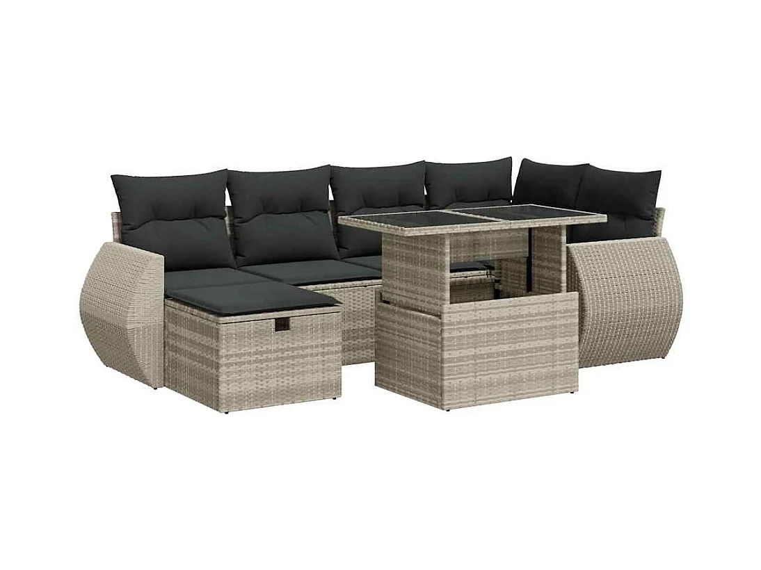 7 peças conjunto sofás para jardim com almofadões vime PE cinzento