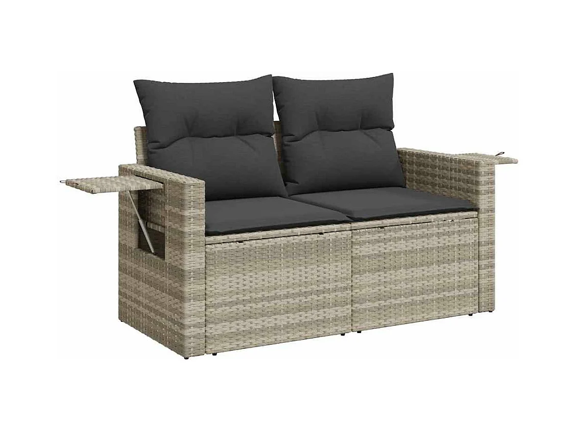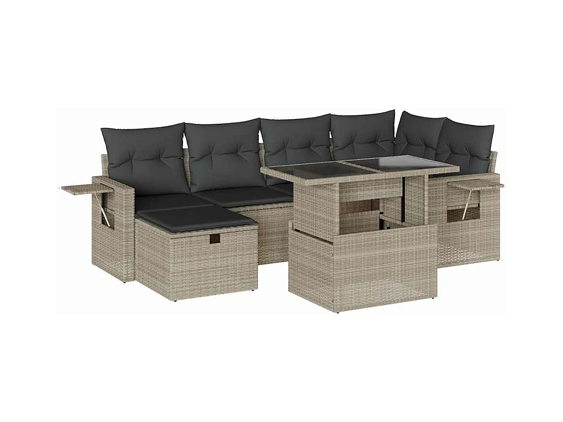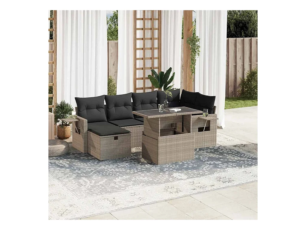 7 peças conjunto sofás para jardim com almofadões vime PE cinzento