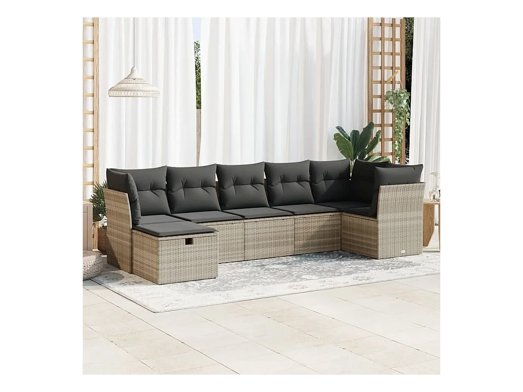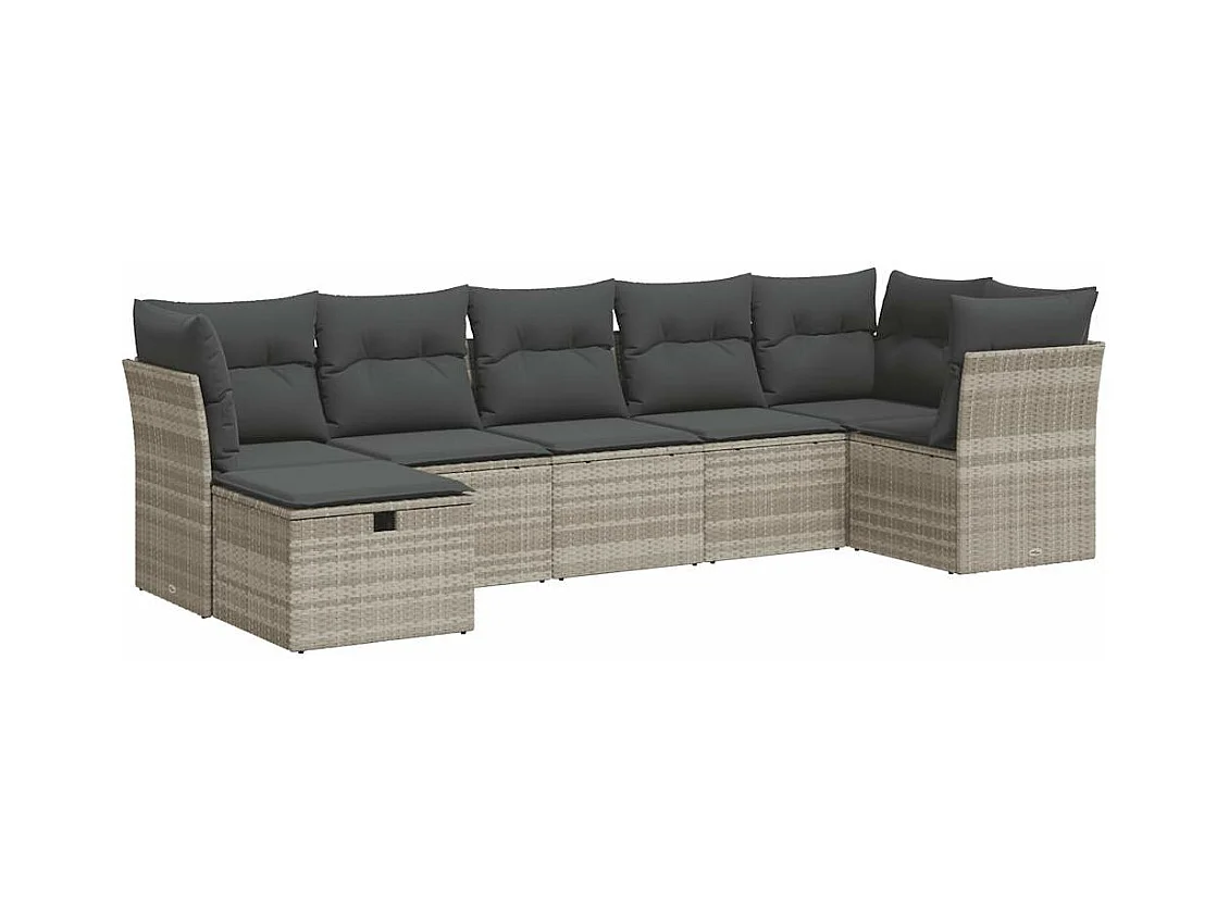 7 peças conj. sofás jardim com almofadões vime PE cinzento-claro