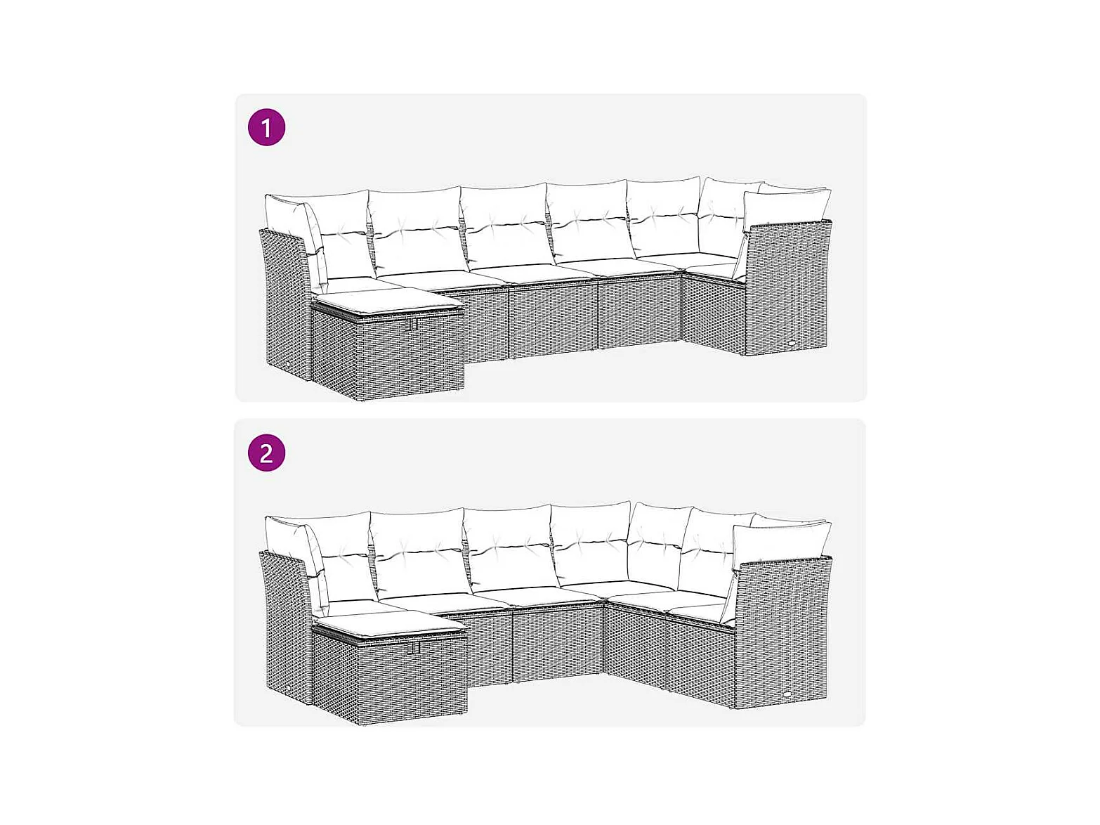 8 peças conjunto sofás de jardim com almofadões vime PE cinzento