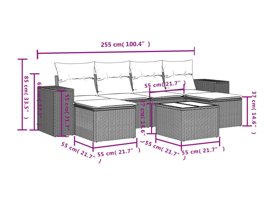 7 peças conjunto sofás para jardim com almofadões vime PE cinzento