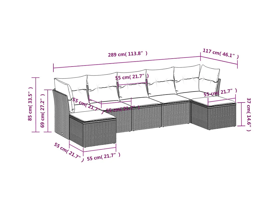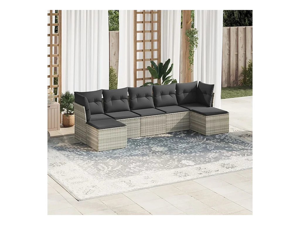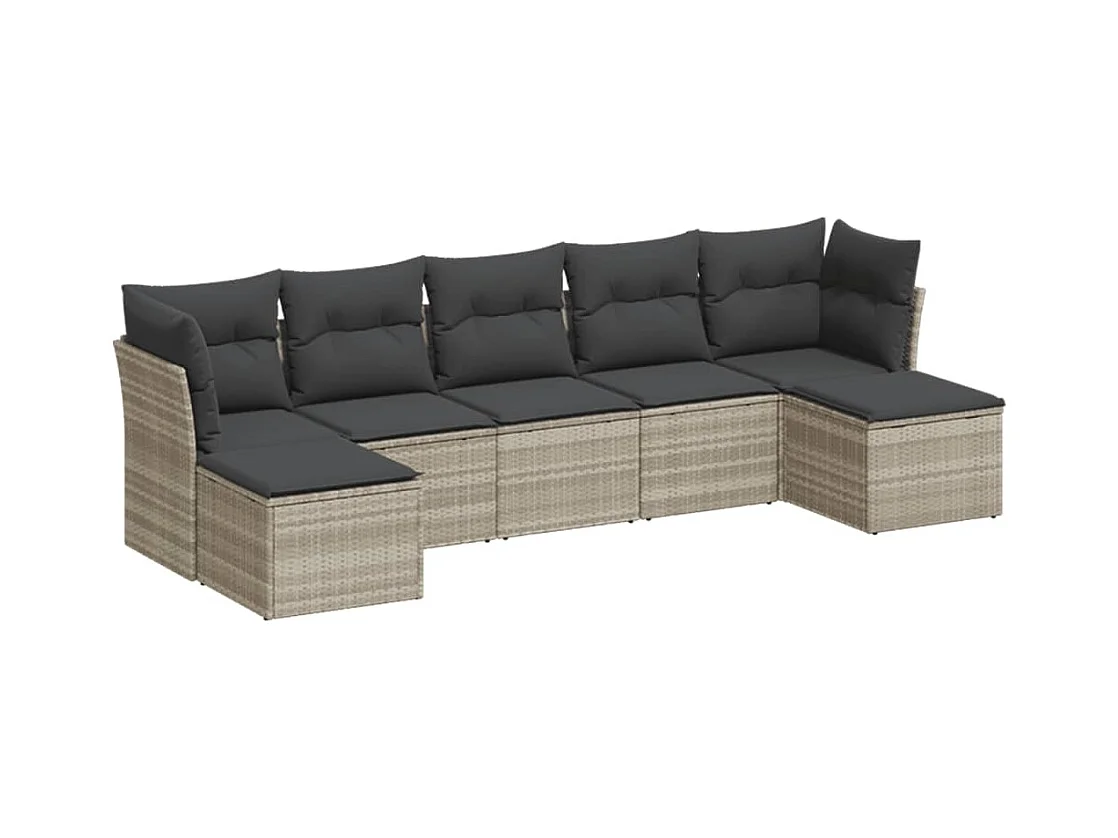7 peças conj. sofás jardim com almofadões vime PE cinzento-claro