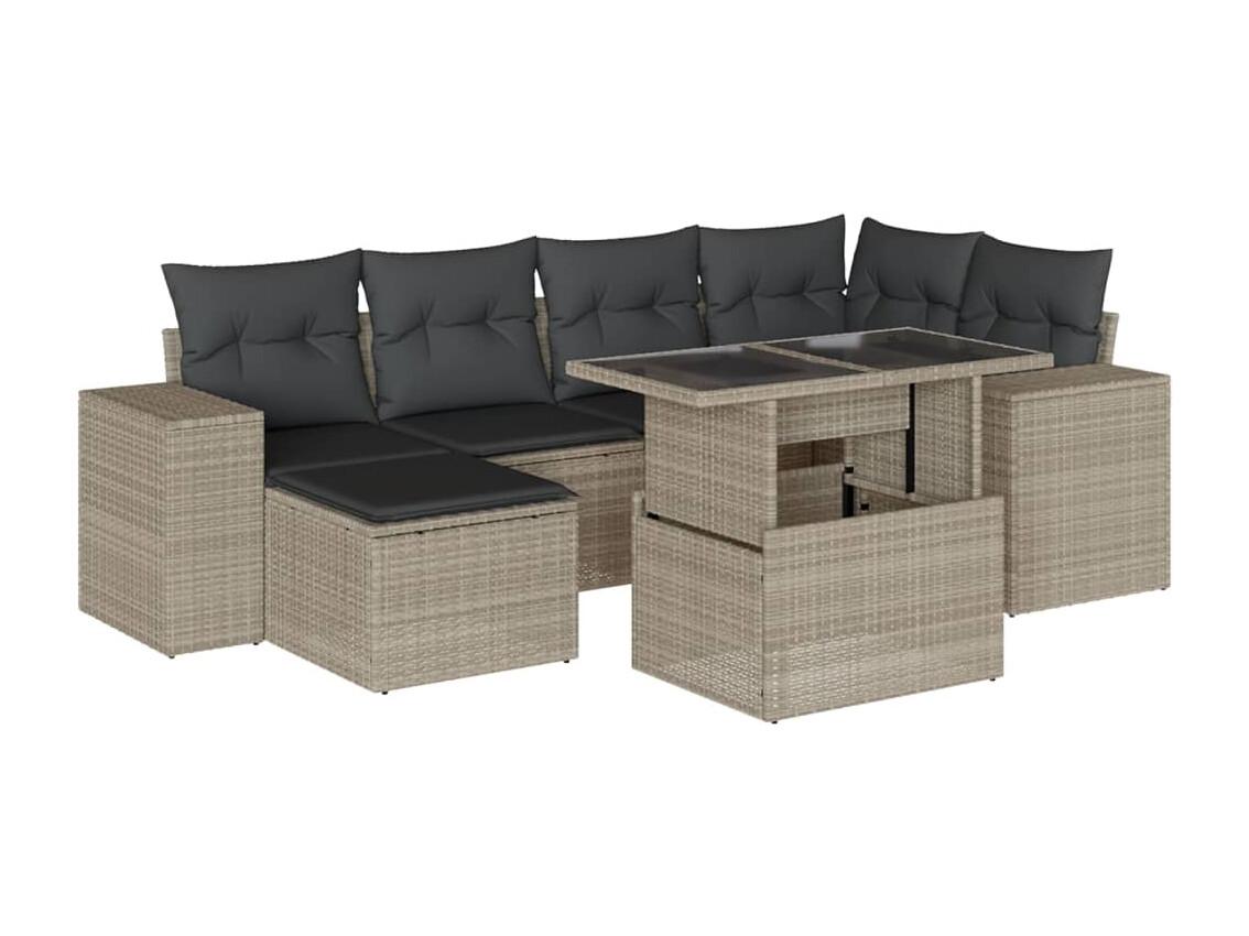 7 peças conj. sofás jardim com almofadões vime PE cinzento-claro