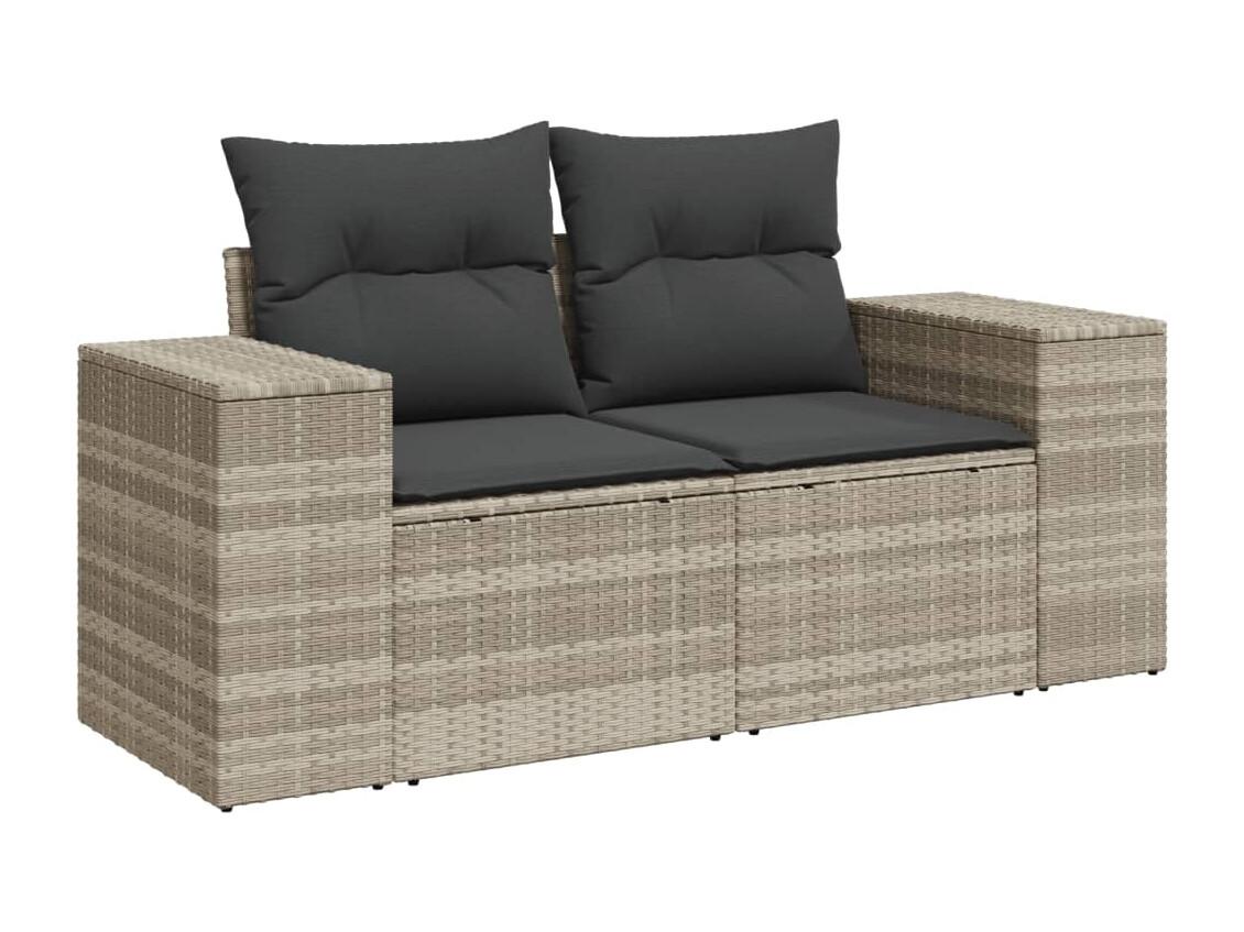 8 peças conj. sofás jardim com almofadões vime PE cinzento-claro