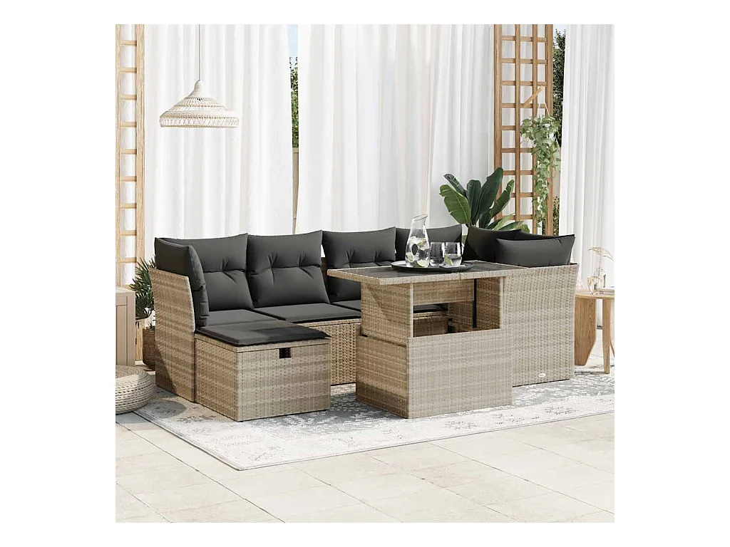 7 peças conjunto sofás jardim almofadões vime PE/acácia cinzento
