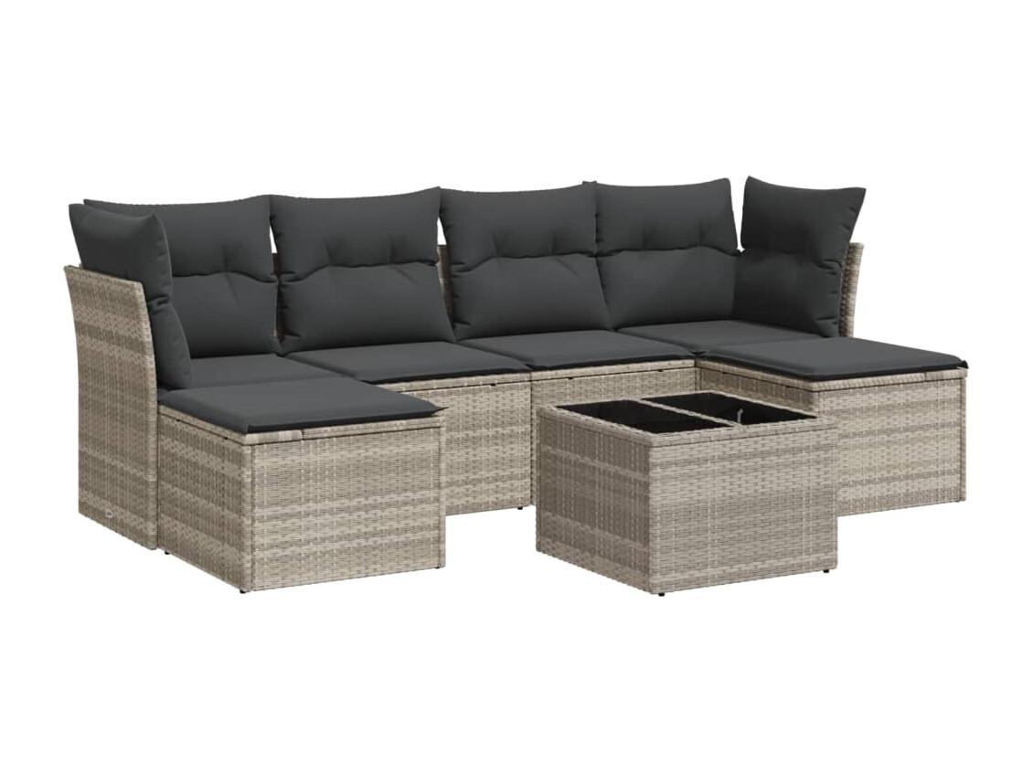 6 peças conj. sofás jardim com almofadões vime PE cinzento-claro