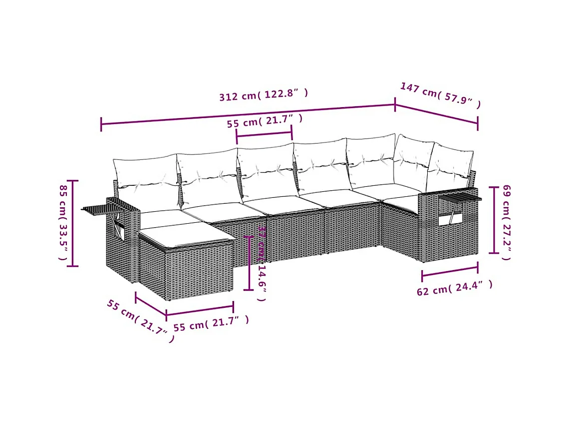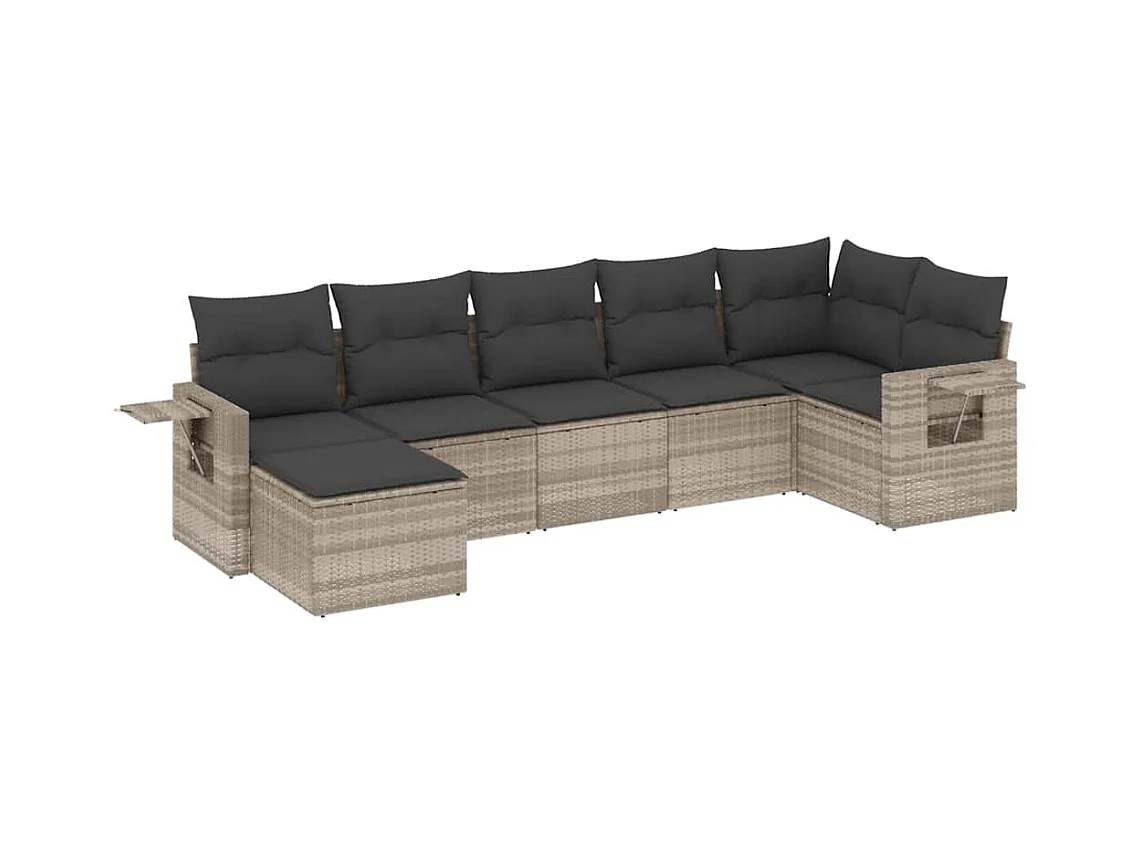 7 peças conj. sofás jardim com almofadões vime PE cinzento-claro