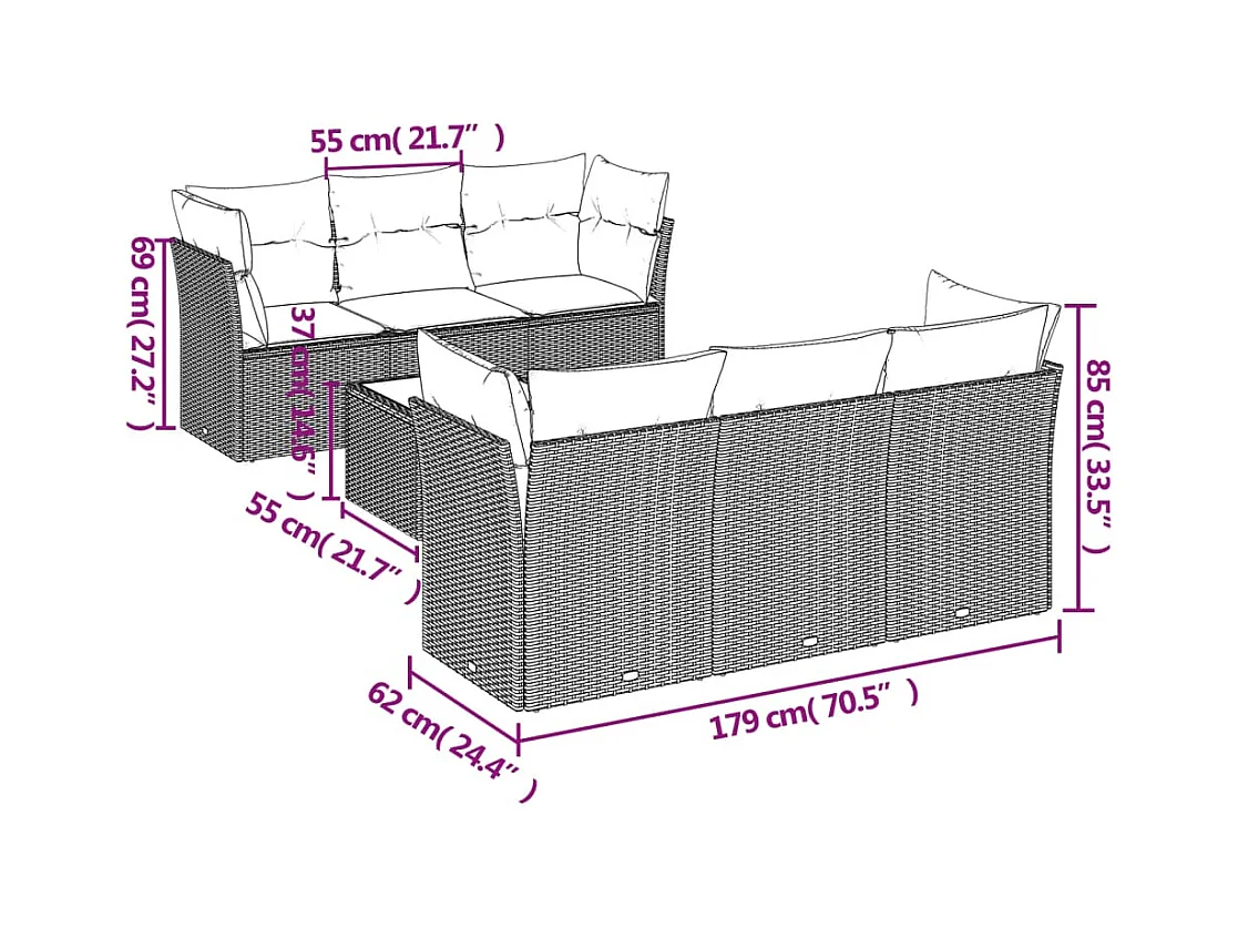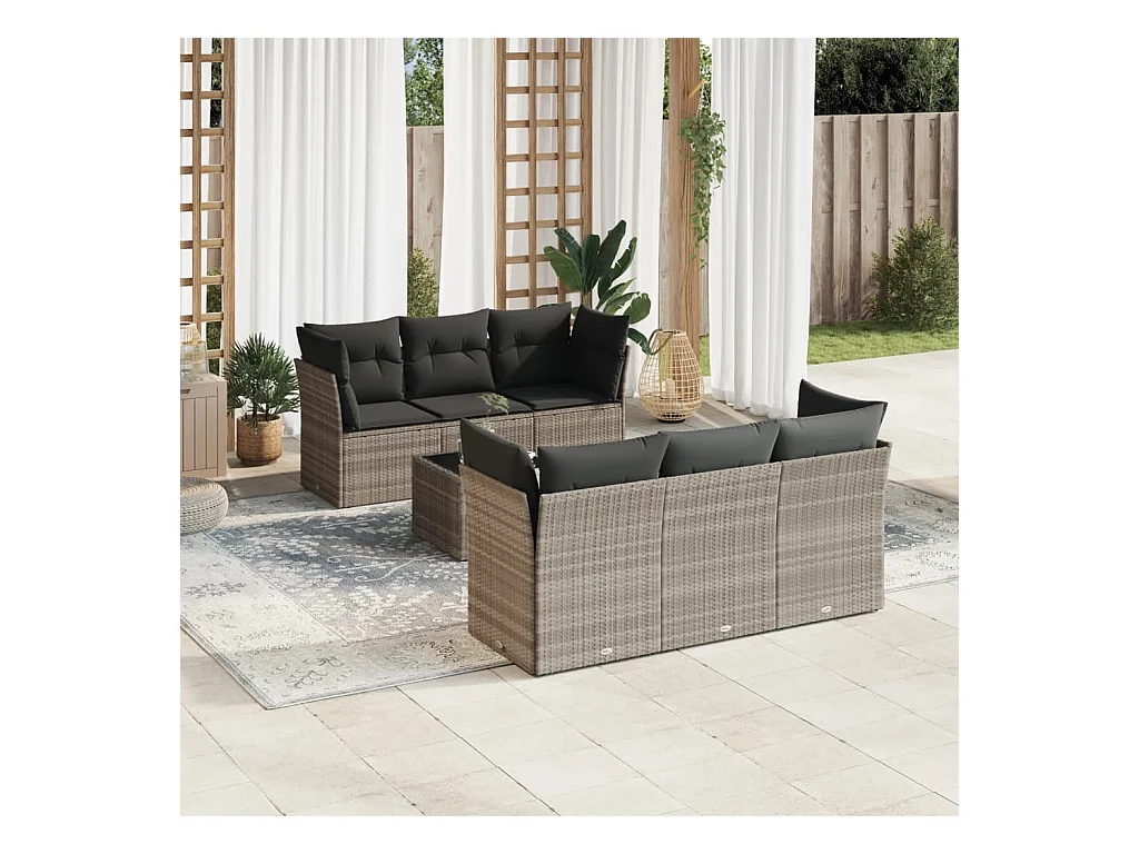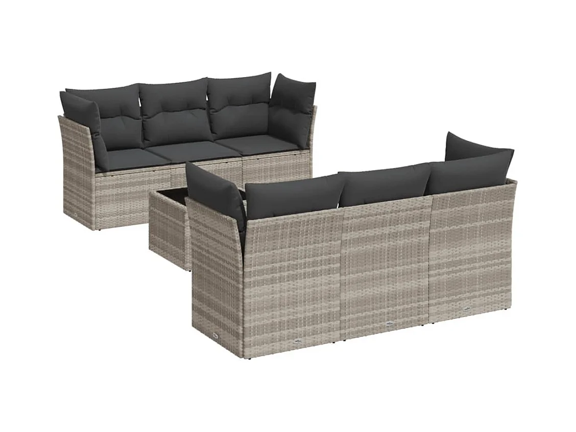 7 peças conjunto sofás para jardim com almofadões vime PE cinzento