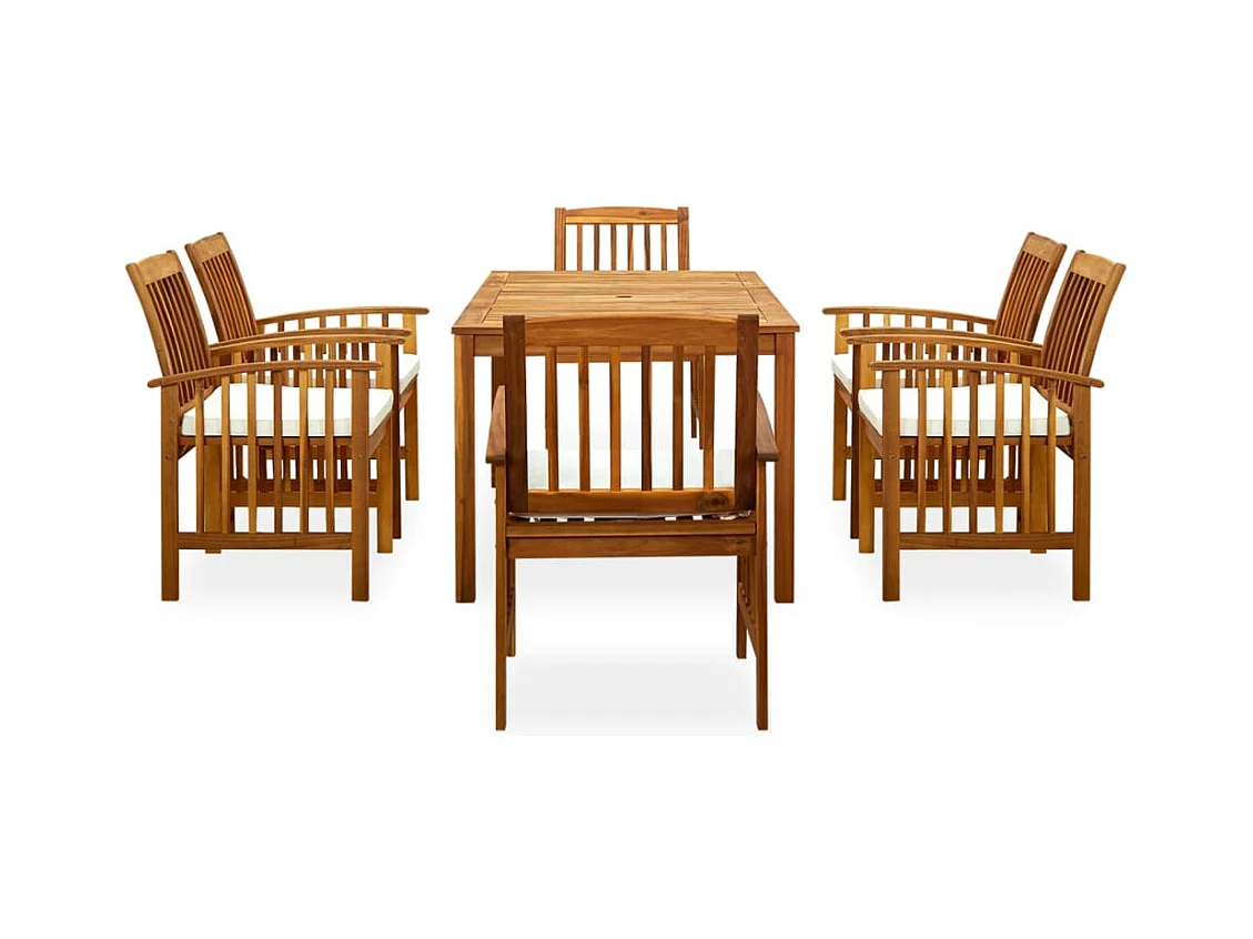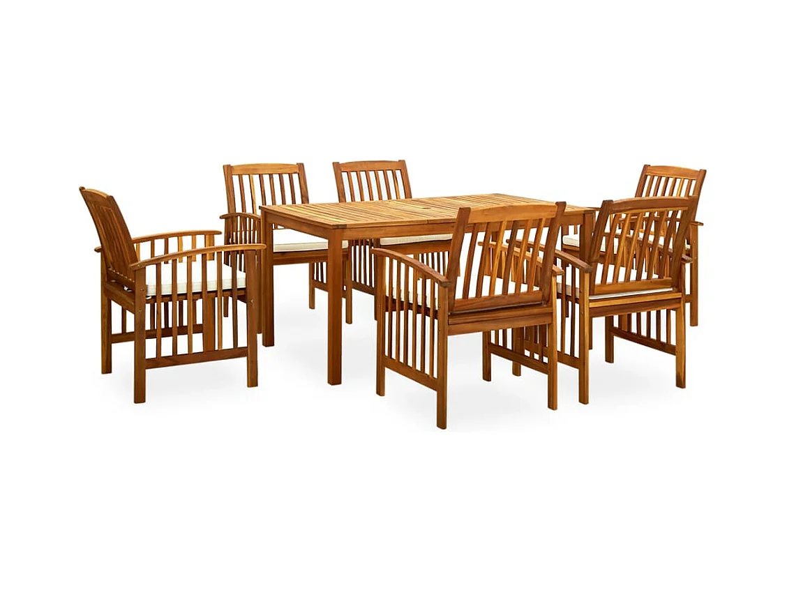 7 peças conjunto de jantar p/ jardim c/ almofadões acácia maciça