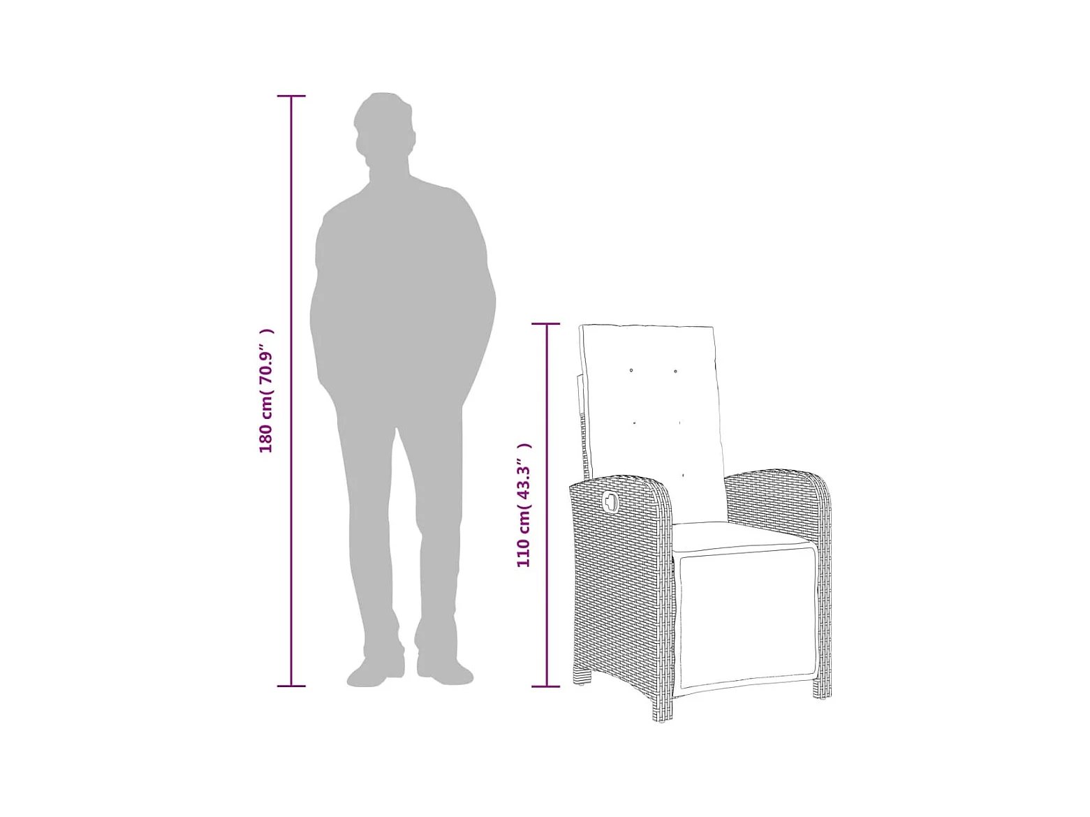7 peças conjunto jantar jardim com almofadões vime PE/acácia cinza