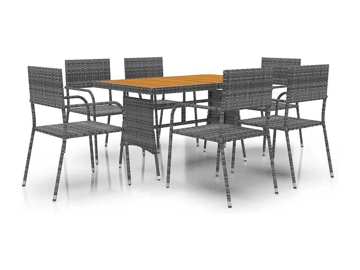 7 peças conjunto de jantar para exterior vime PE cinzento