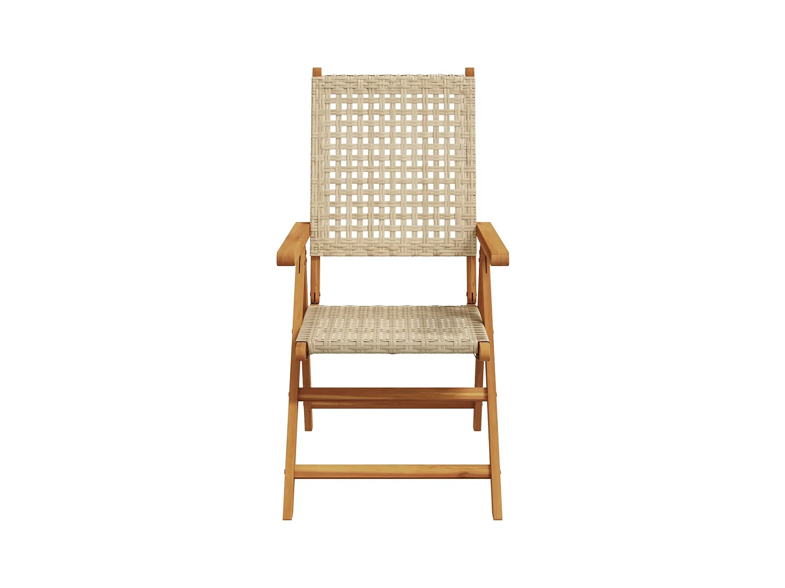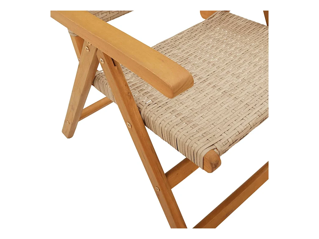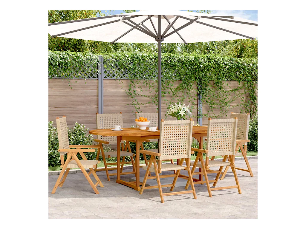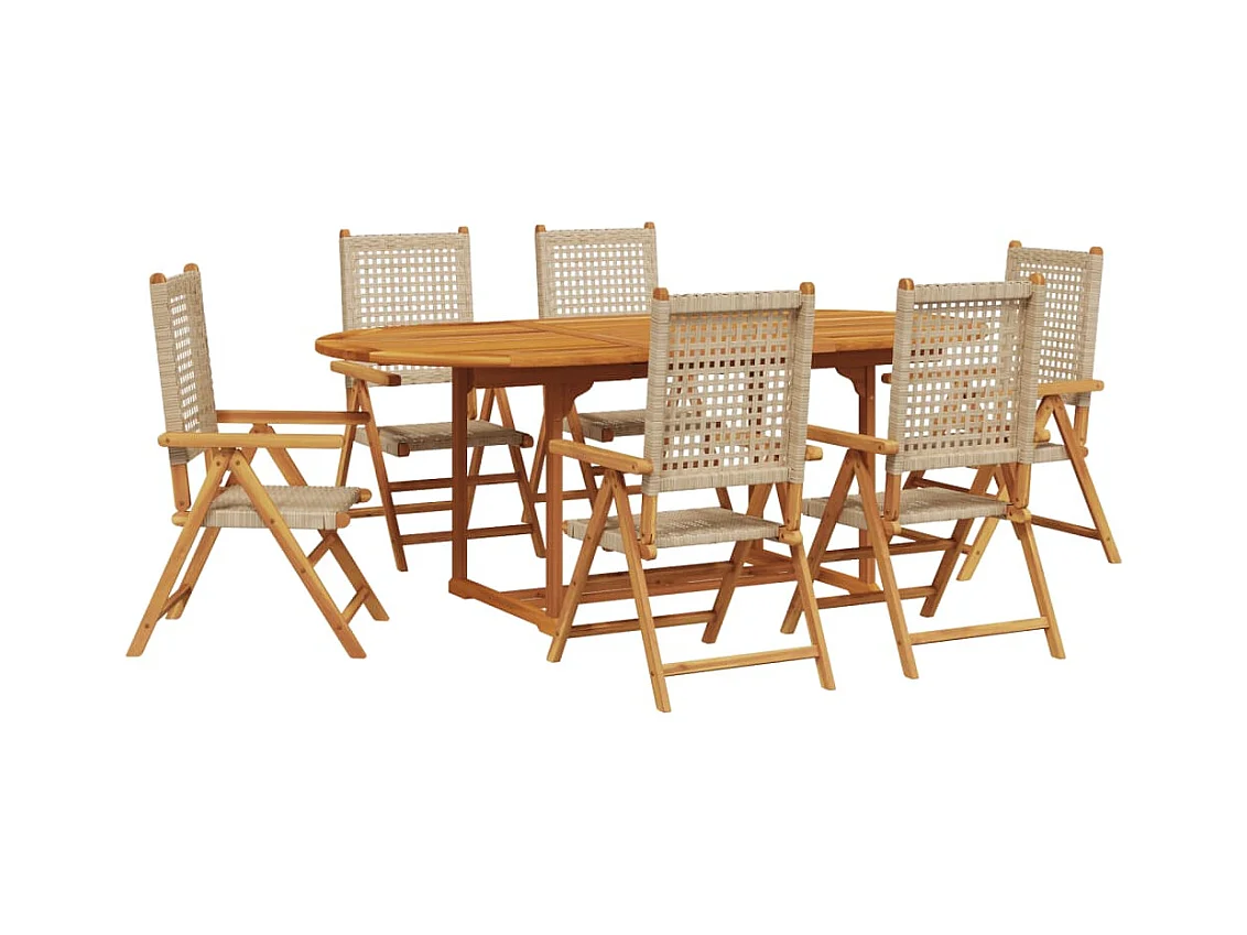 7 peças conjunto de jantar para jardim vime PE/ madeira maciça bege