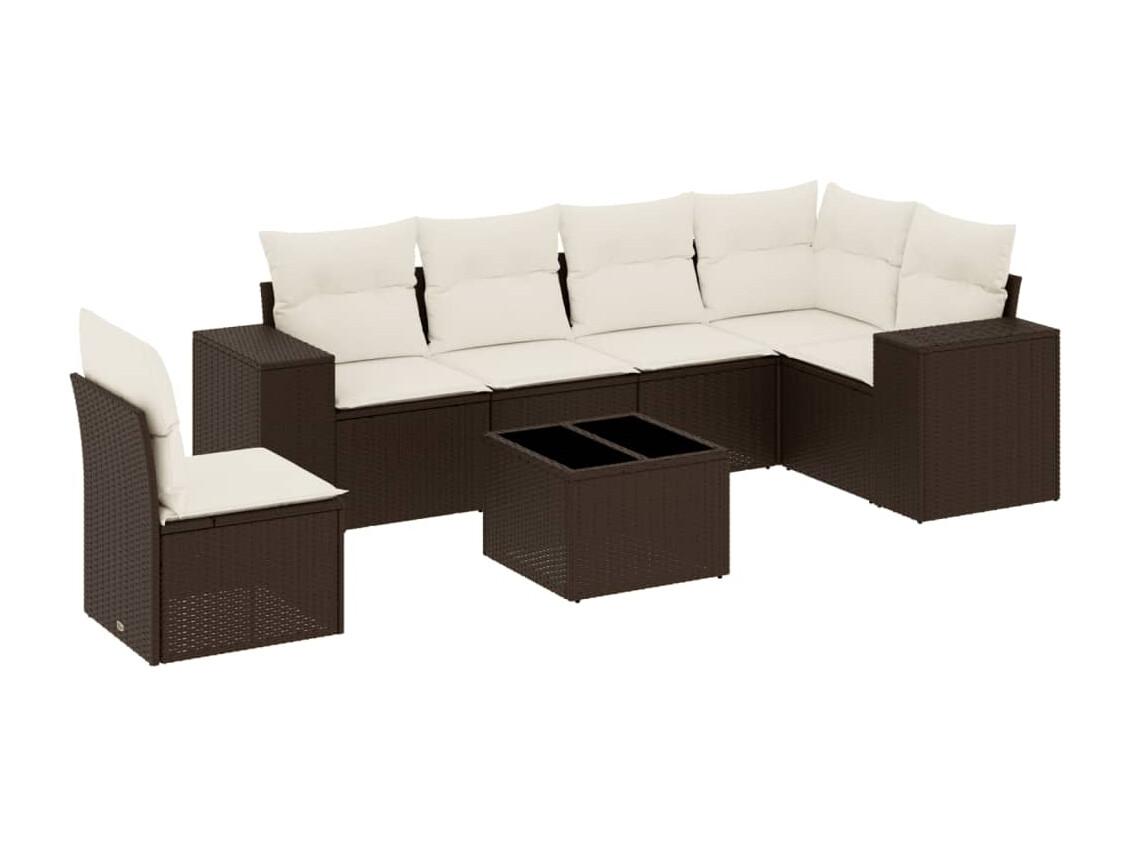 7 peças conjunto de sofás jardim com almofadões vime PE castanho