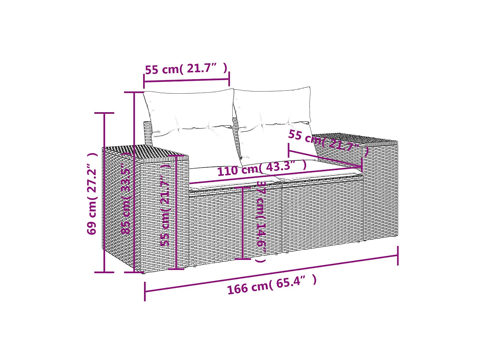 8 peças conjunto sofás de jardim com almofadões vime PE castanho