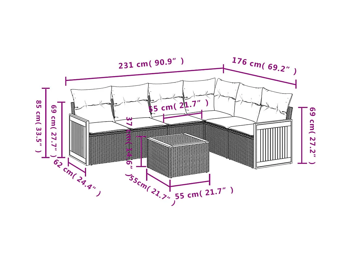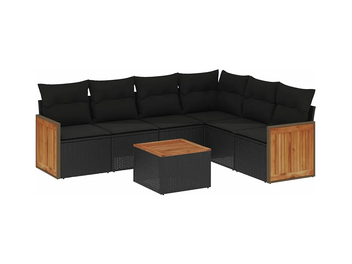 7 peças conjunto de sofás p/ jardim c/ almofadões vime PE preto