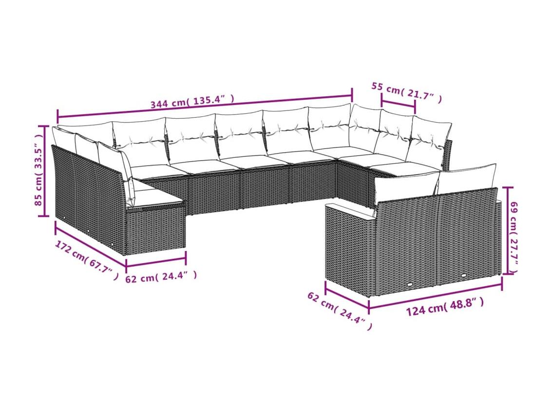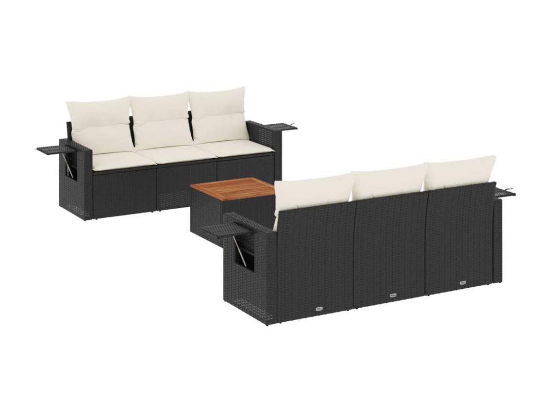7 peças conjunto de sofás p/ jardim c/ almofadões vime PE preto