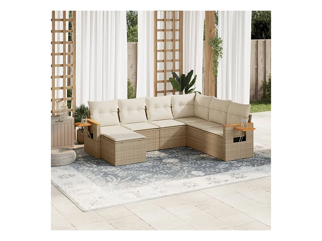 6 pcs conjunto de sofás p/ jardim com almofadões vime PE bege PT354994