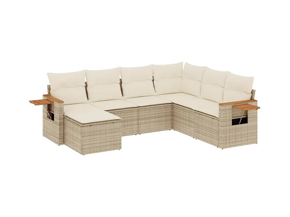 7 peças conjunto de sofás para jardim com almofadões vime PE bege