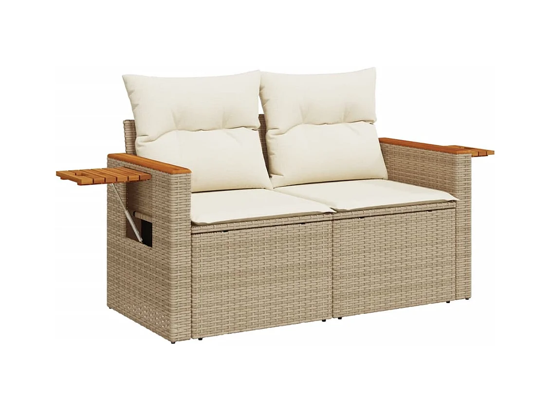 6 pcs conjunto de sofás p/ jardim com almofadões vime PE bege PT291703