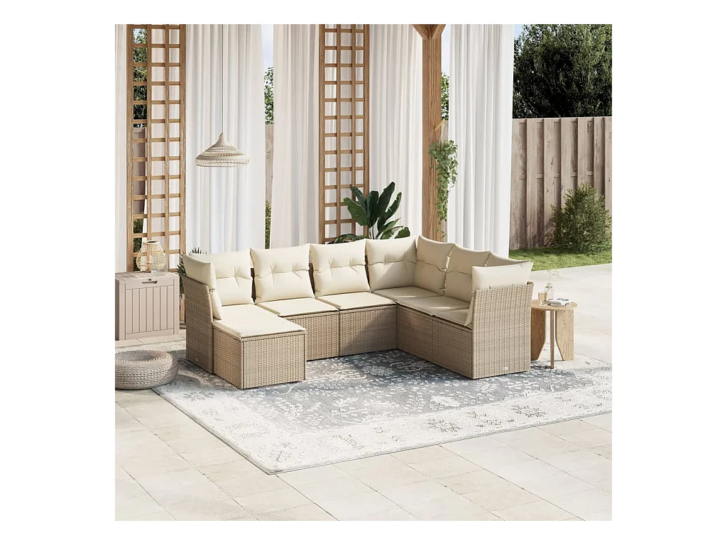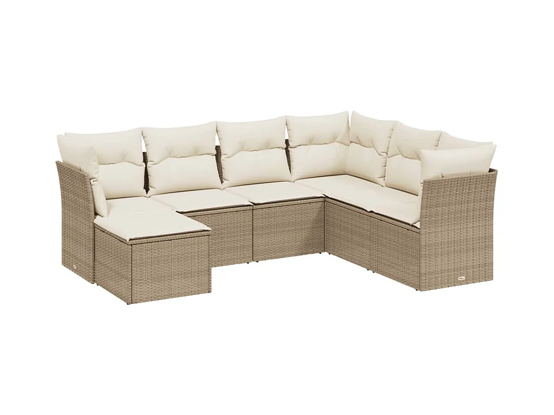 7 peças conjunto de sofás para jardim com almofadões vime PE bege