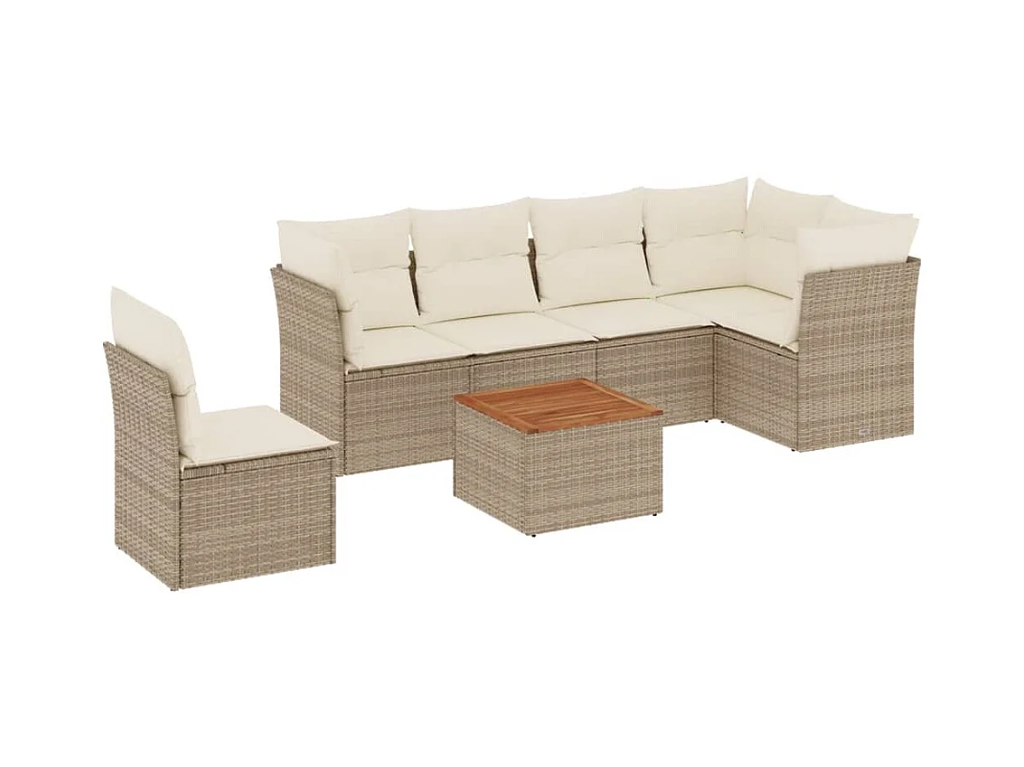 6 pcs conjunto de sofás p/ jardim com almofadões vime PE bege PT354994