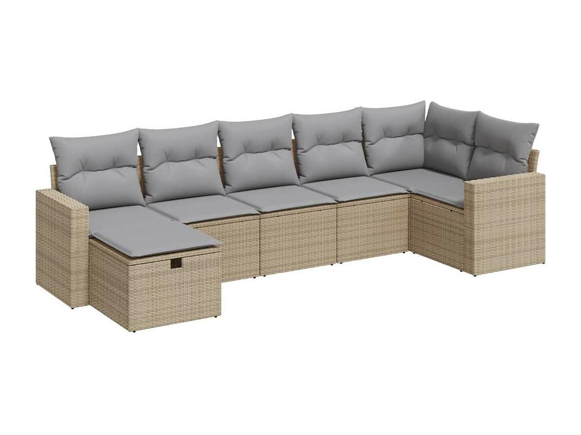 7 peças conjunto de sofás para jardim com almofadões vime PE bege