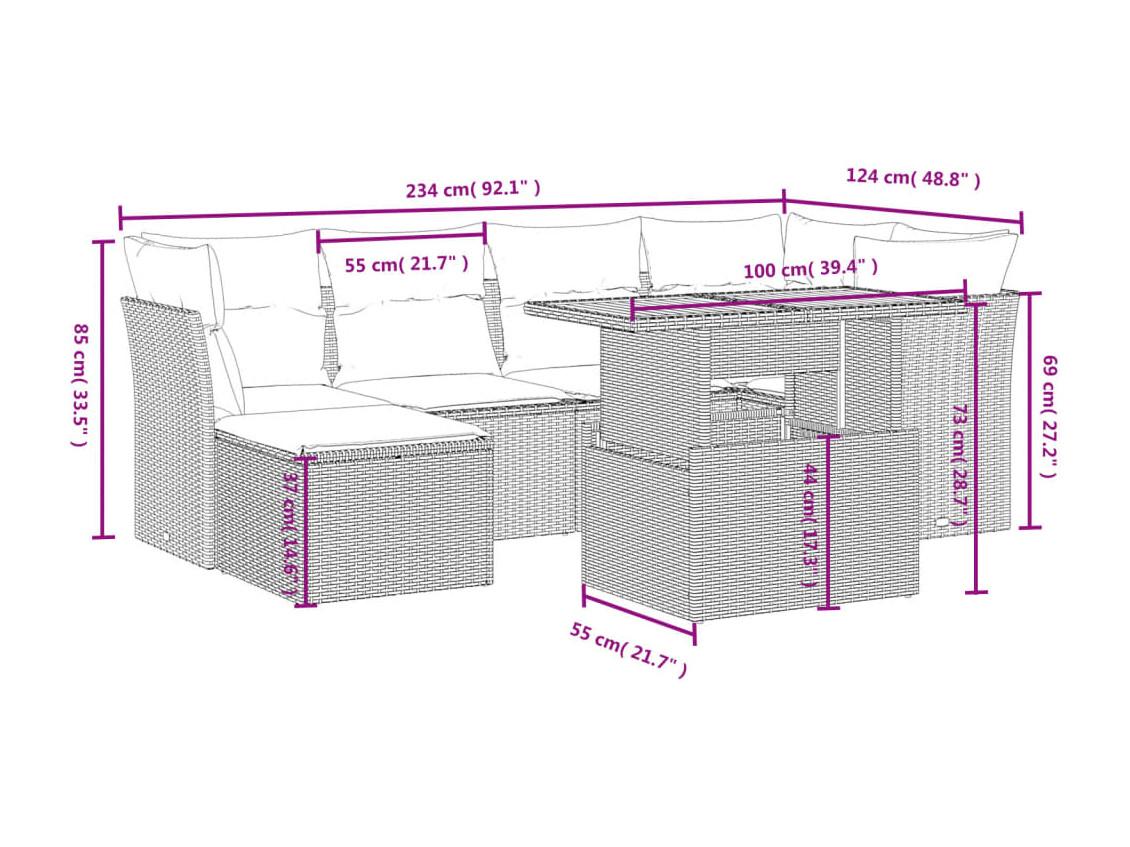7 peças conjunto sofás jardim com almofadões vime PE/acácia bege