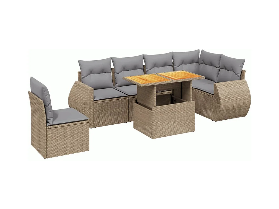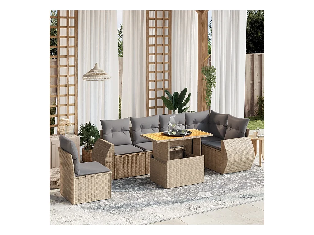 7 peças conjunto de sofás para jardim com almofadões vime PE bege