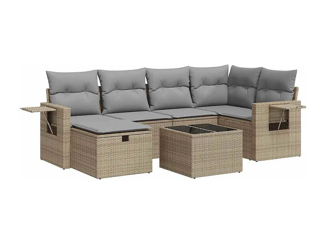7 peças conjunto de sofás para jardim com almofadões vime PE bege