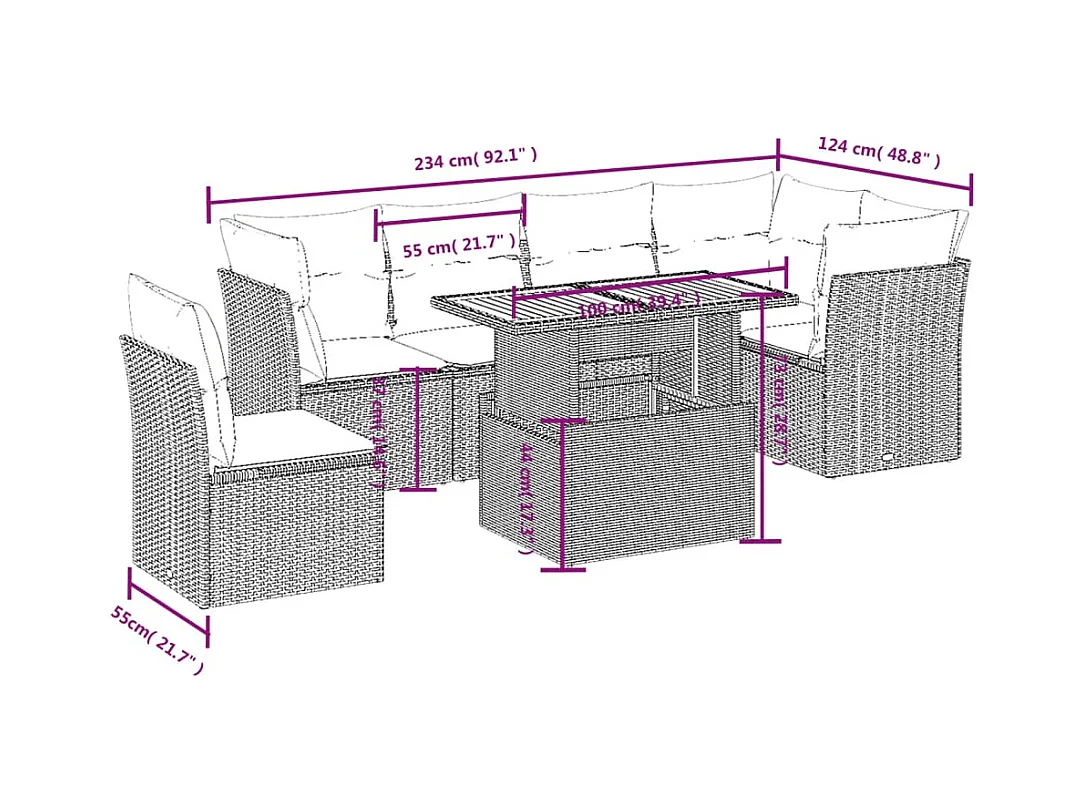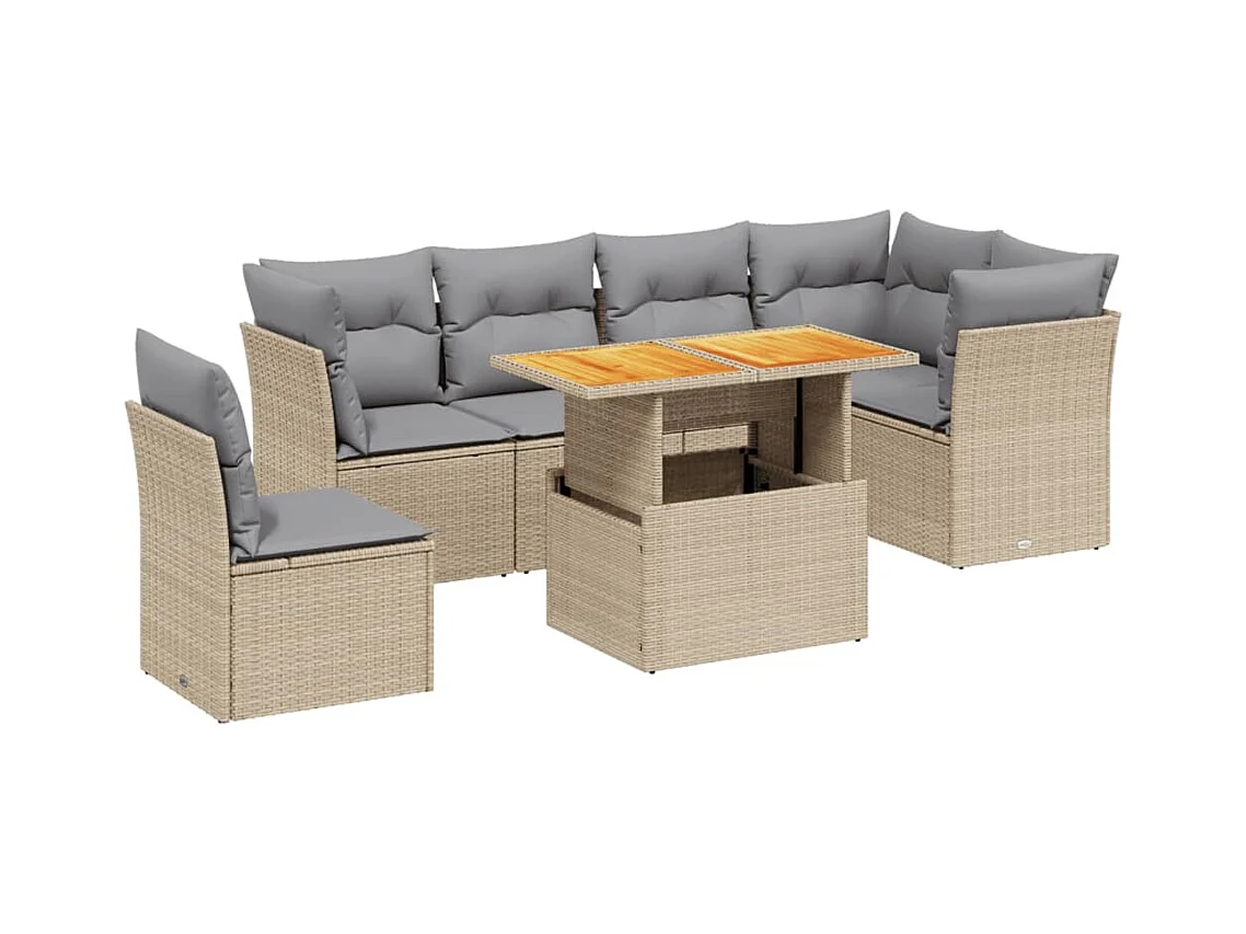 7 peças conjunto de sofás para jardim com almofadões vime PE bege